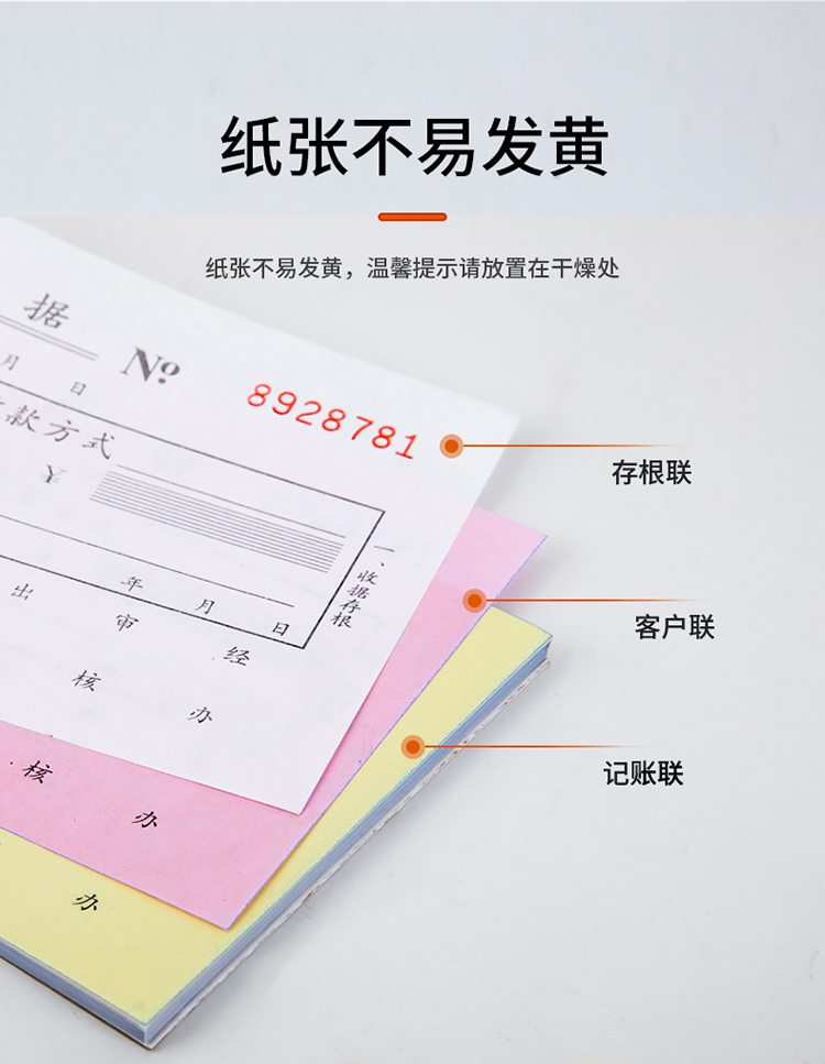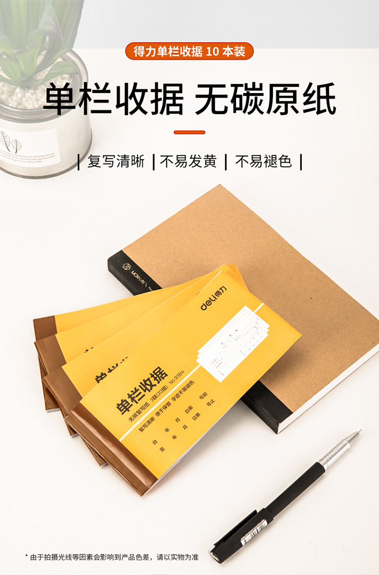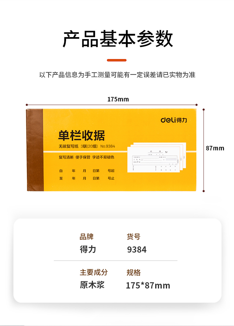 商品标题:得力 9384 三联单栏收据 175x87mm (单位:本) 黄