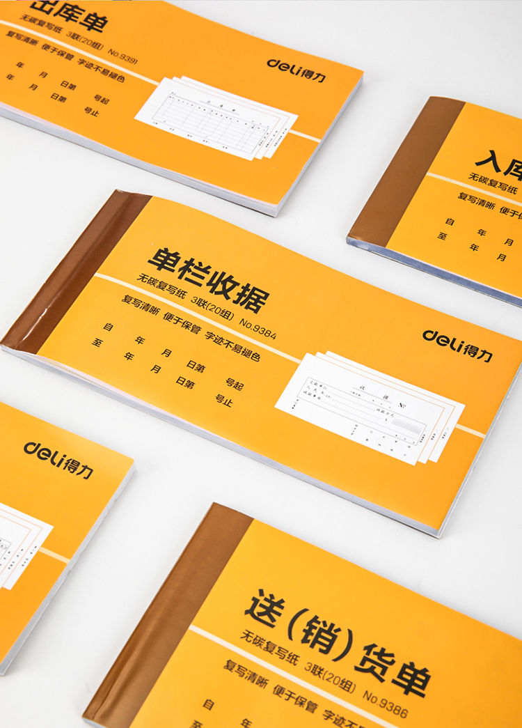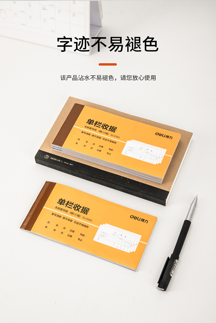 得力 9384 三联单栏收据 175x87mm (单位:本) 黄