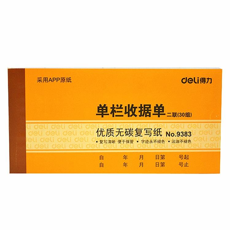 得力 9383 二联单栏收据 175x87mm (单位:本) 黄