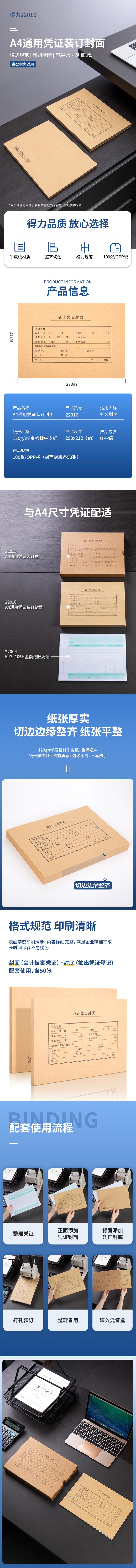 商品标题:得力22016A4通用凭证装订封面(混)(50套/袋)