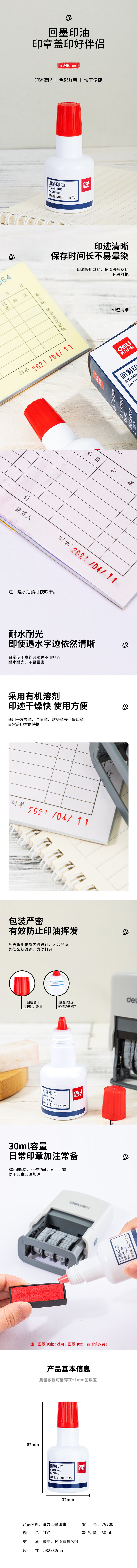 商品标题:得力79900回墨印油30ml(红色)(单位:瓶)