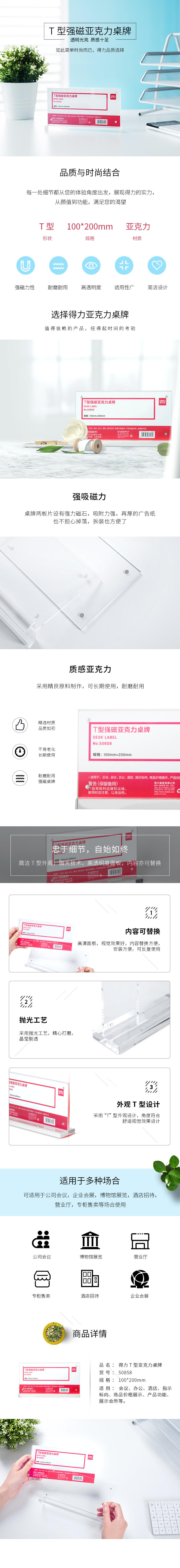 商品名称:得力50858T型强磁亚克力桌牌(透明)(单位:个)