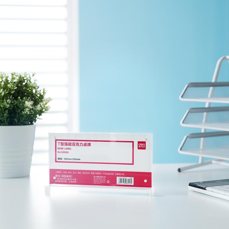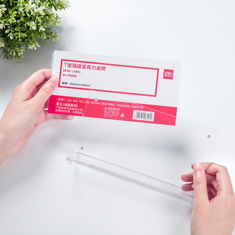 得力50858T型强磁亚克力桌牌(透明)(单位:个)