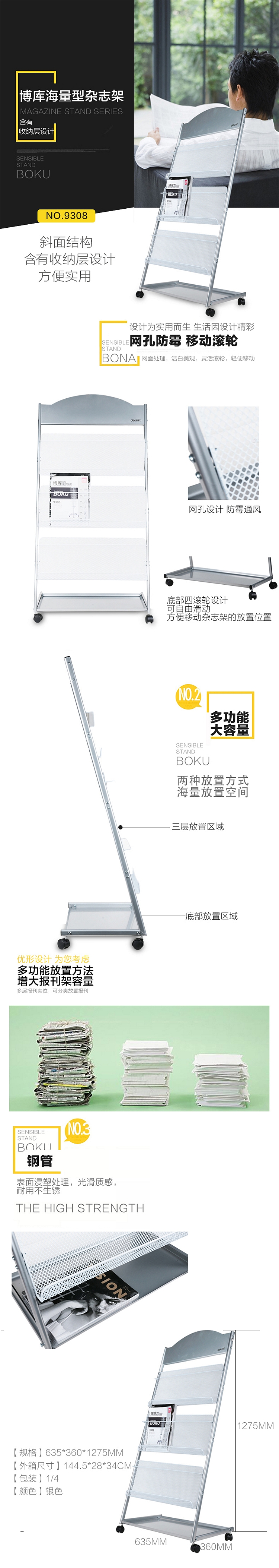 商品标题:得力 9308 书刊架 635x360x1275mm (单位:只) 灰