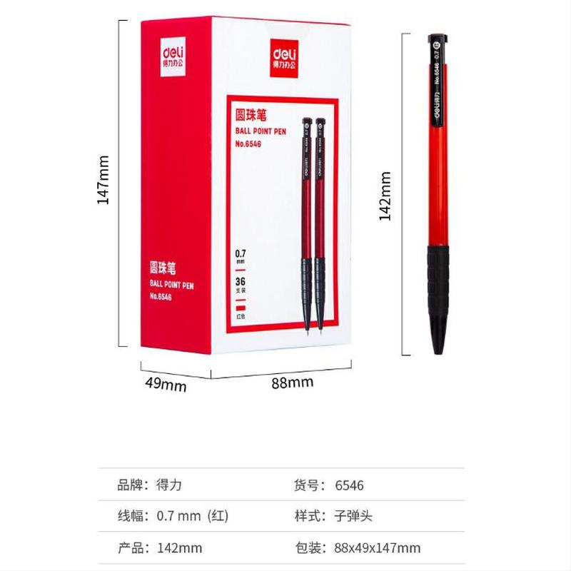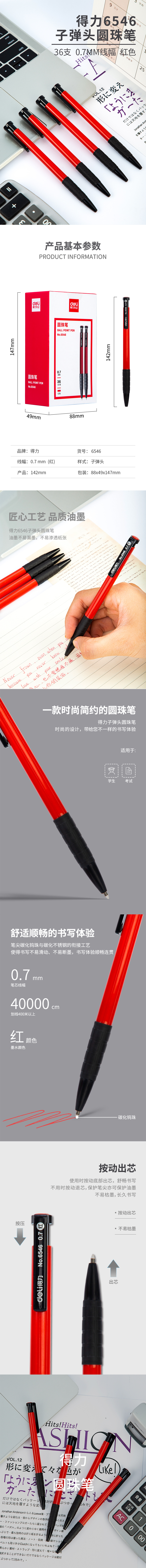 名称:得力6546圆珠笔0.7mm子弹头(红)