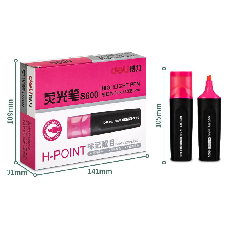 商品标题:得力 S600 荧光笔 5.0mm 10支/盒(单位:支) 粉色