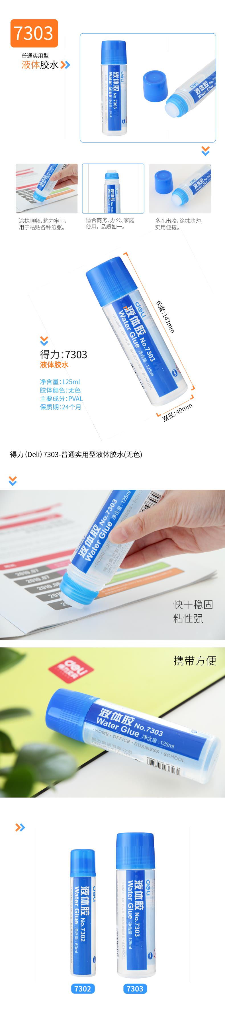 商品标题:得力 7303 胶水 125ml (单位:瓶) 无色