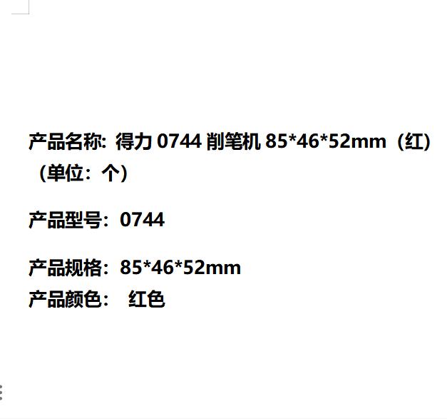 商品标题:得力0744削笔机85*46*52mm(红)(单位:个)