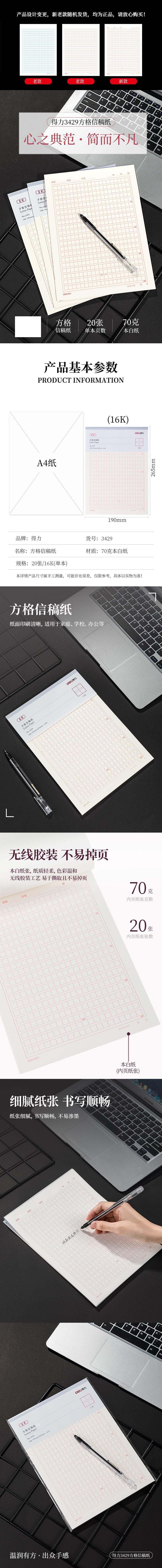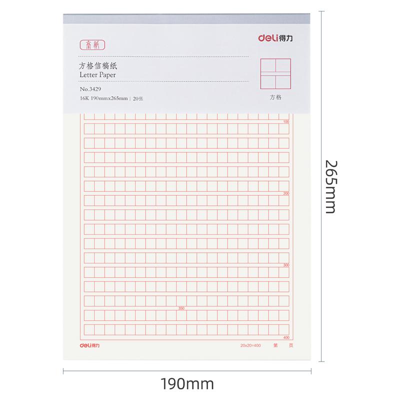 商品标题:得力 3429 方格信纸稿纸-70g-265*190mm (单位:本)