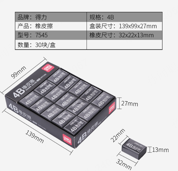 商品标题:得力 7545 橡皮擦(黑) (单位:块)