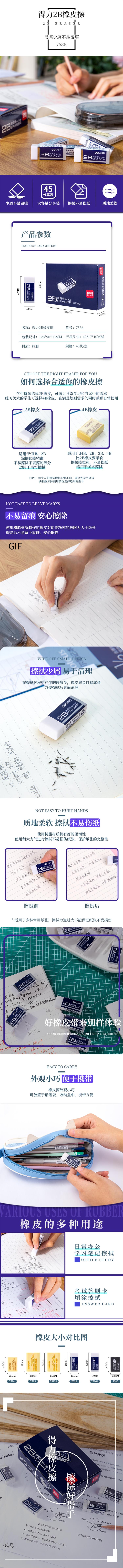 商品标题:得力 7536 橡皮擦 42x17x10mm (单位:块) 白