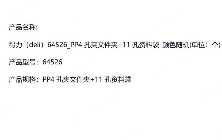 商品标题:得力(deli)64526_PP4孔夹文件夹+11孔资料袋 颜色随机(单位:个)
