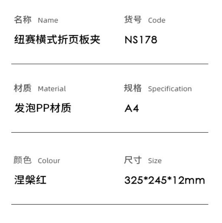 商品标题:得力NS178-纽赛横款折页板夹(涅磐红)(个)
