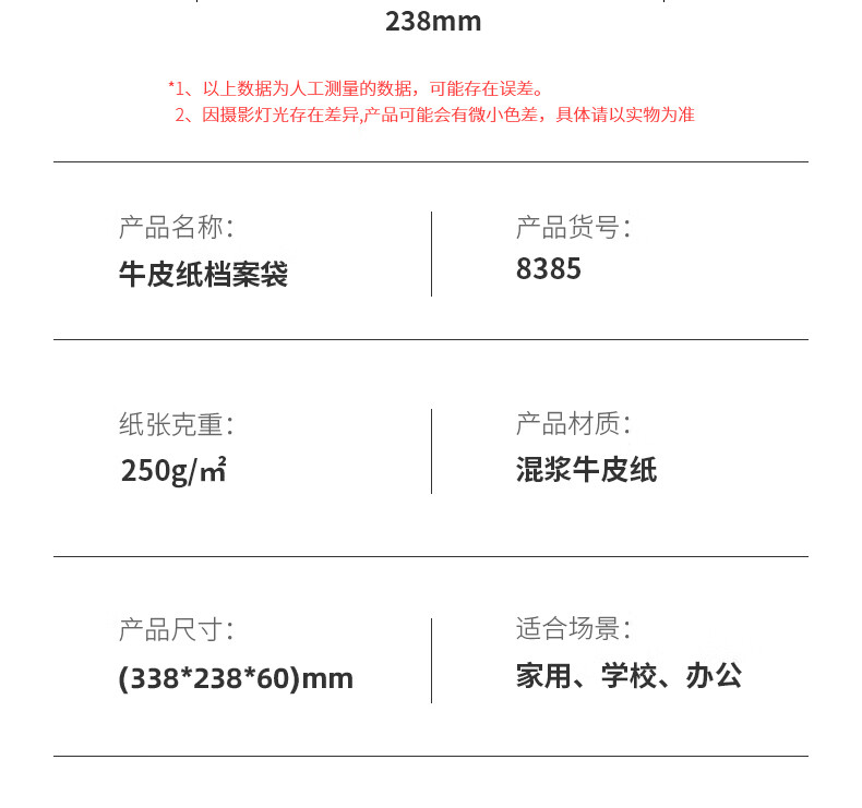 得力8385混浆牛皮纸档案袋(250g-6cm)(黄)(10个/包)