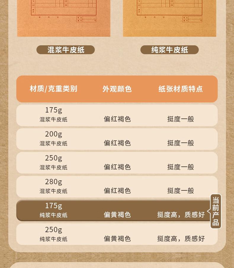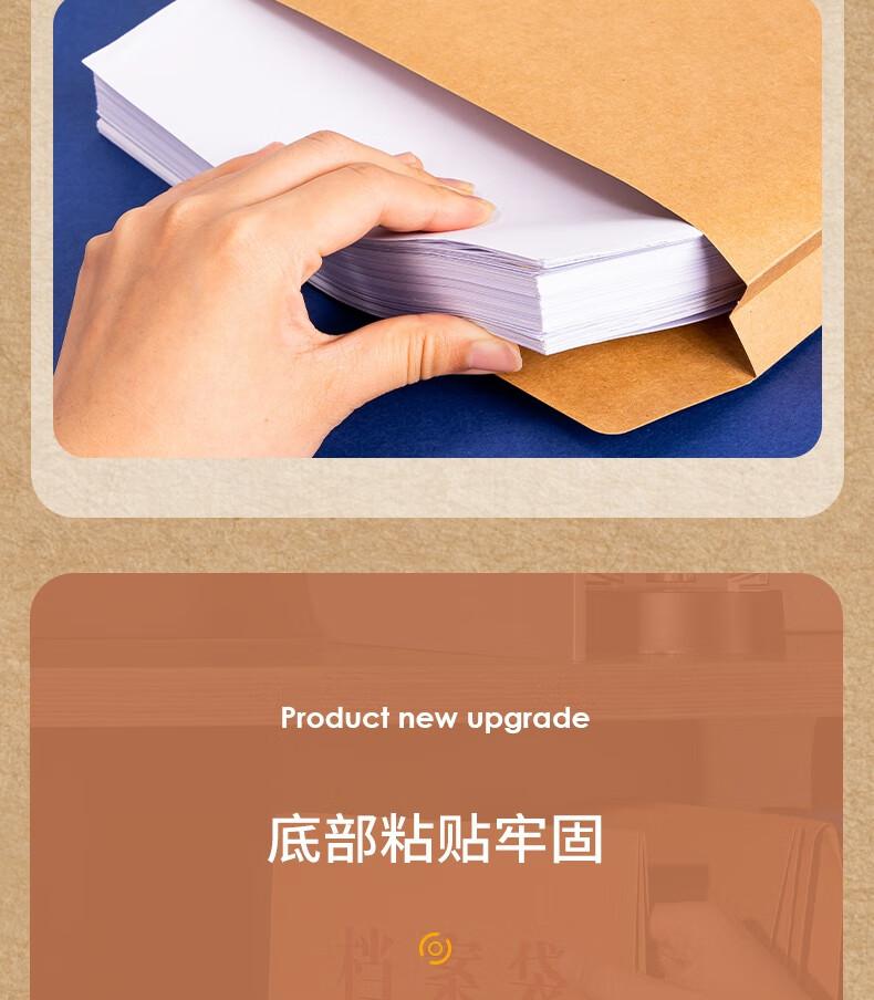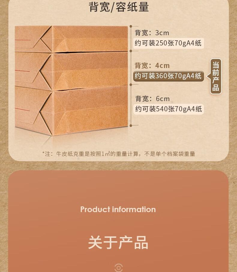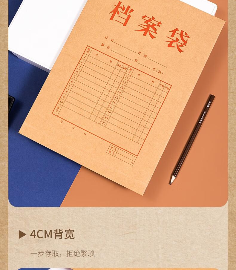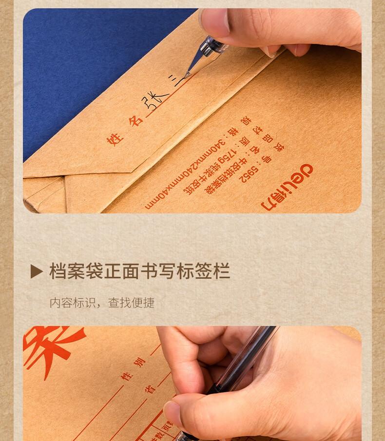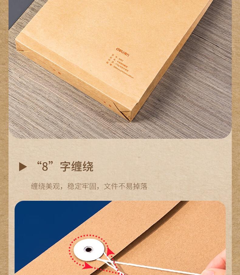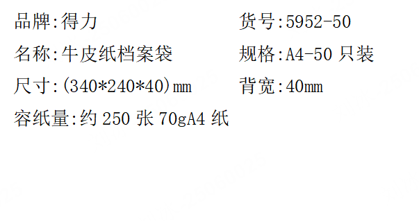 商品标题:得力档案袋5952-50_175g进口纯浆牛皮纸40mm(黄)(50个/包)