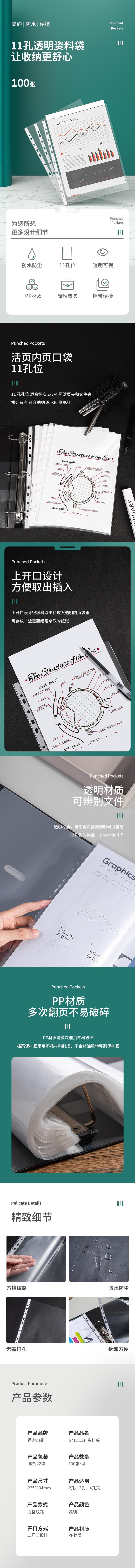 得力 5712_11 孔资料袋 100只/包(单位:包) 透明
