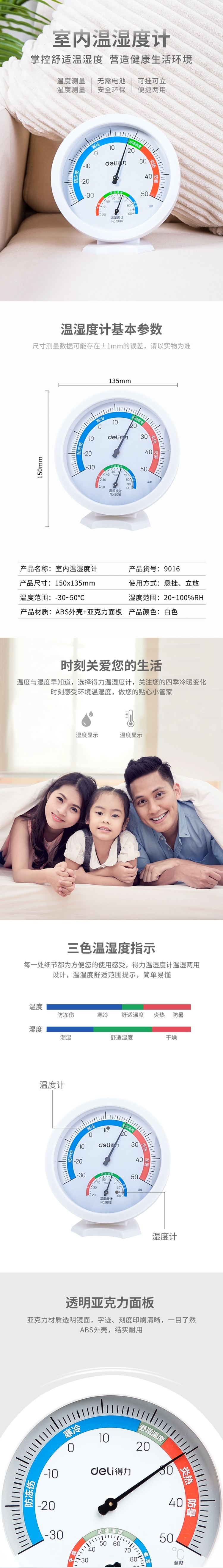 商品标题:得力9016 室内温湿度计(白色)(只)