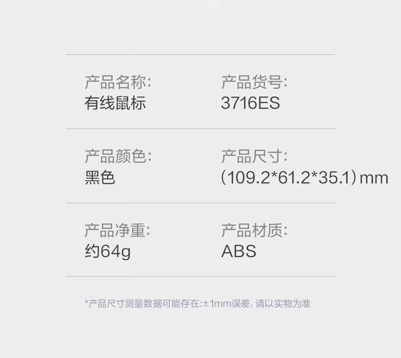 商品标题:得力3716ES有线鼠标(黑)