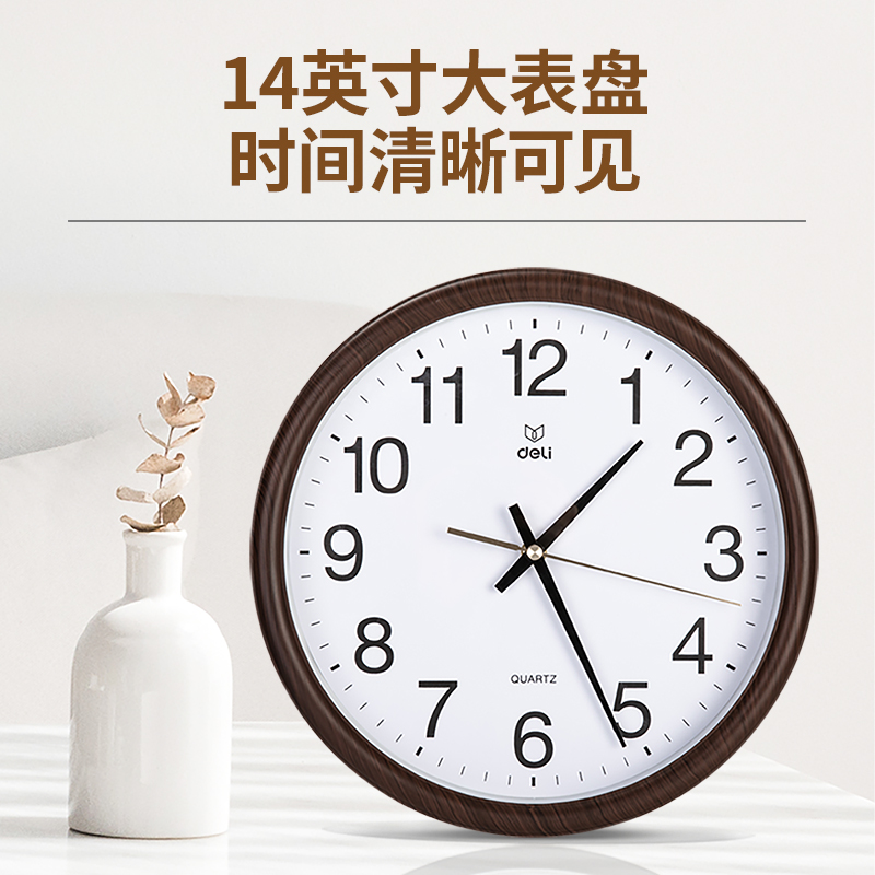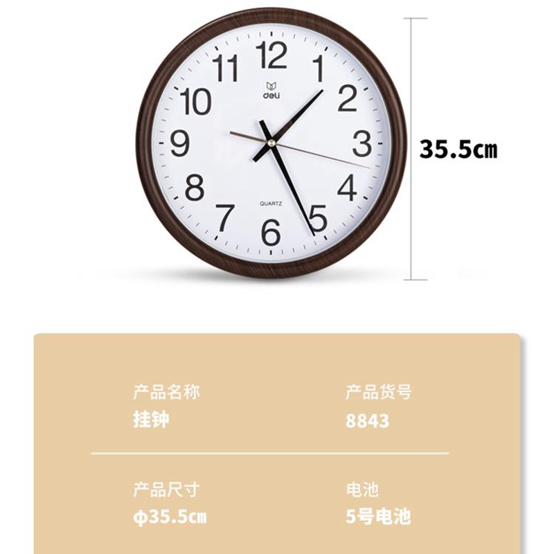 商品标题:得力8843木纹挂钟(14寸)(木纹)(只)