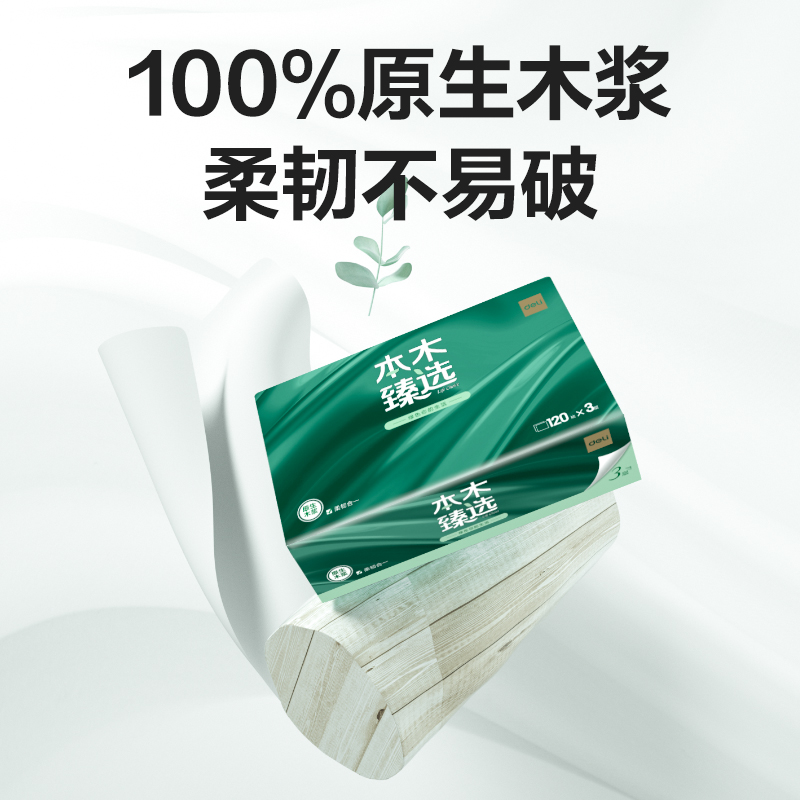 得力本木臻选MR3120-03软抽3层120抽M码(白)(包)