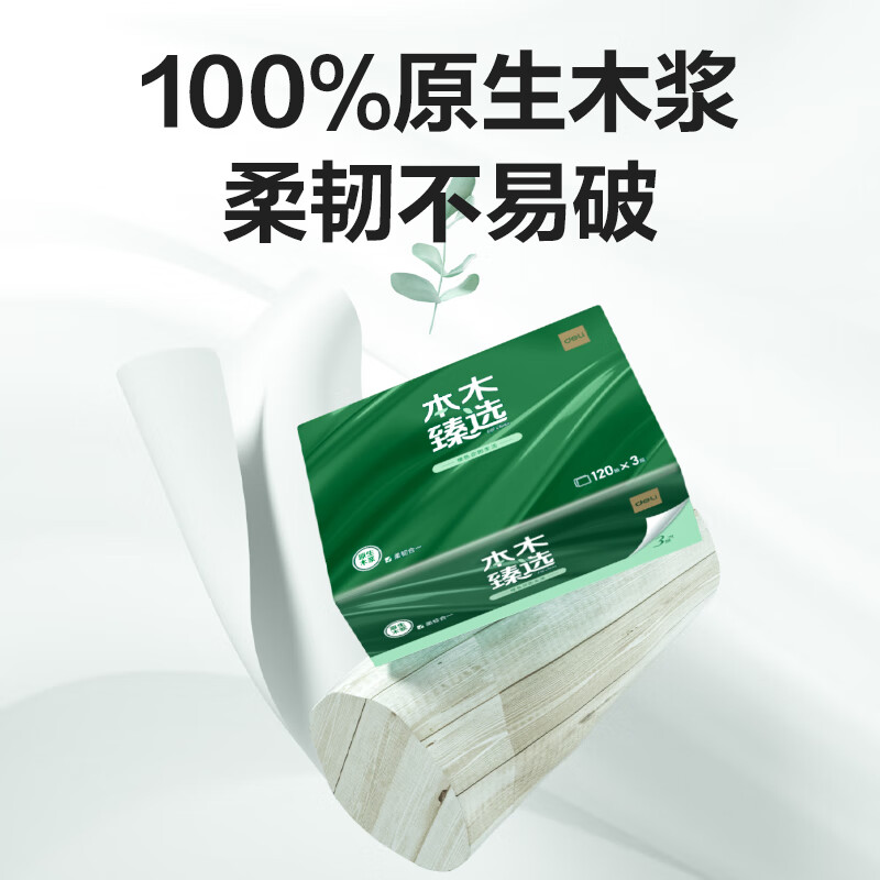 得力本木臻选MR3120-02软抽3层120抽S码(白)(包)