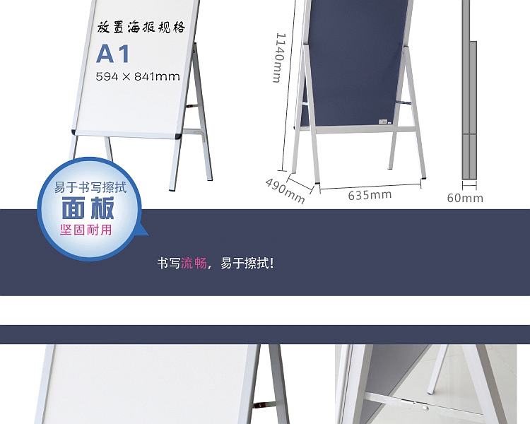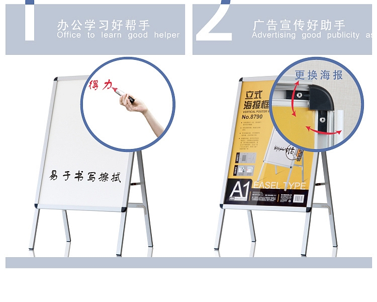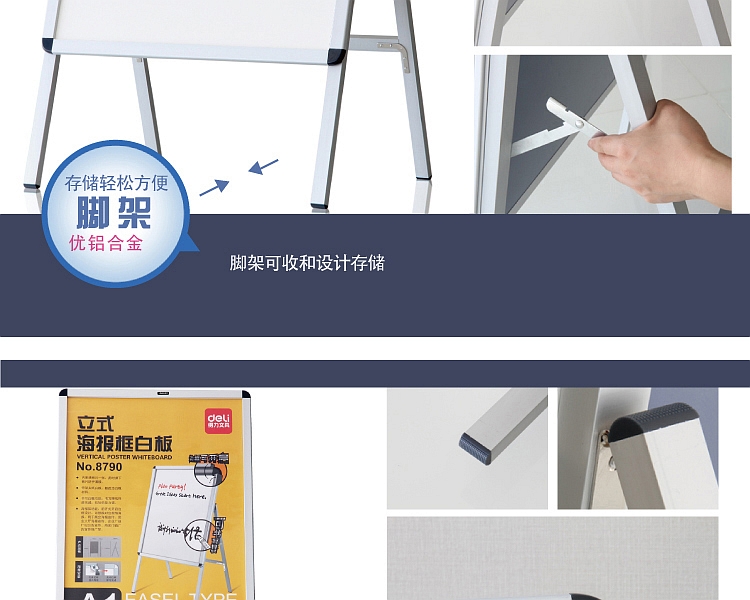 商品标题:得力 8790 立式海报框白板841x594mm (单位:块) 银色