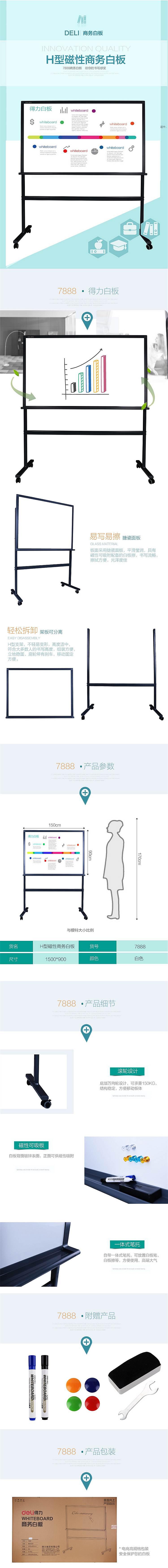 商品标题:得力H型架商务白板7888 1500*900mm(黑色)(块)