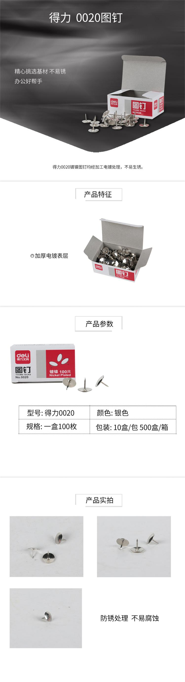 商品标题:得力 0020 图钉 100粒/盒 (单位:盒)
