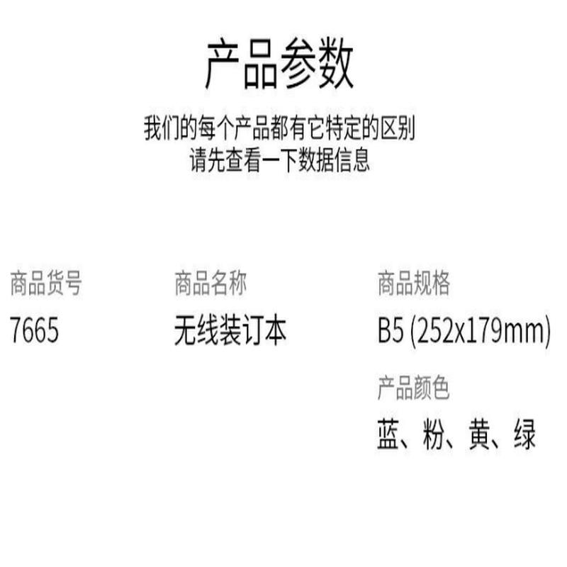 商品标题:得力7665办公无线装订本(混)-80张-B5(本)