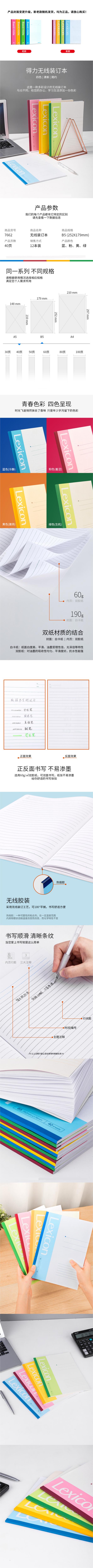 商品标题:得力 7662 胶装本 B5/40页 (单位:本) 混色