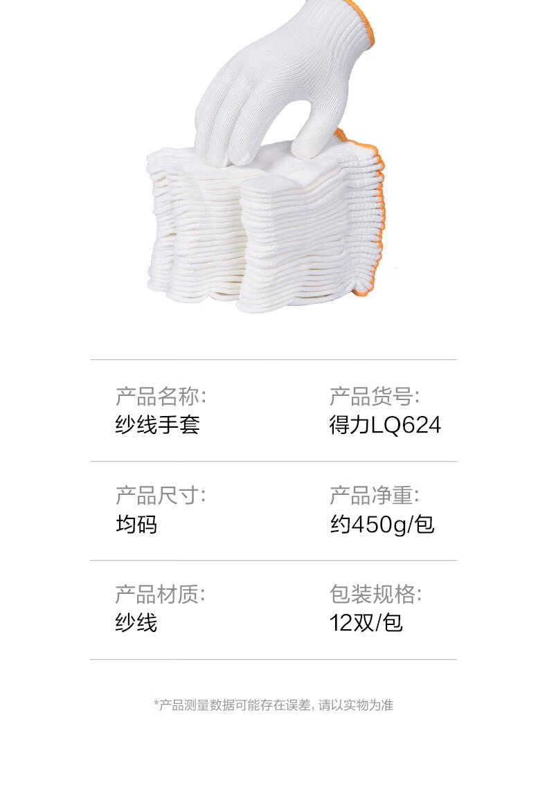 得力得心LQ624纱线手套(均码)(白色)(12双/包)
