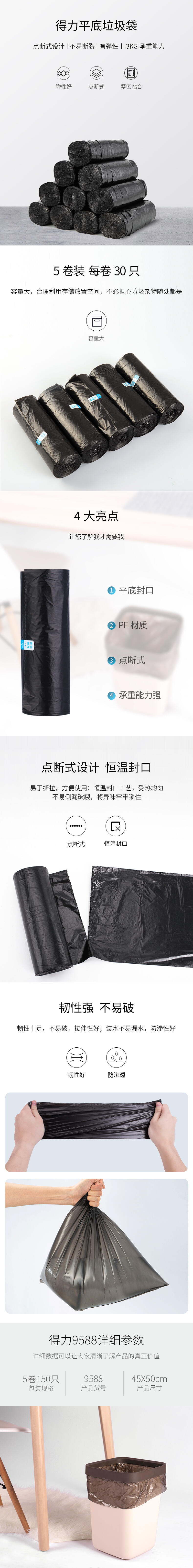 得力9588平底垃圾袋(黑)(5卷/包)450*500*0.007MM平底(单位:包)