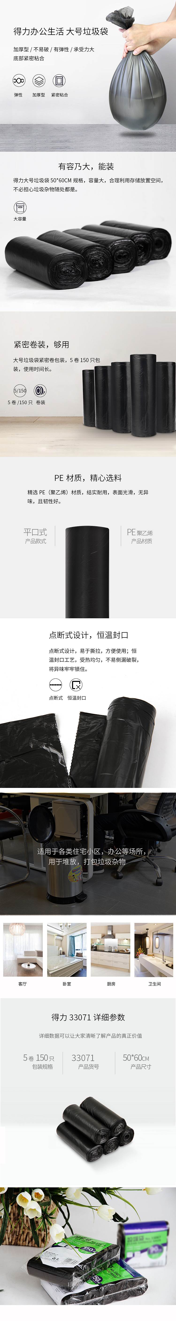 得力(deli)33071 八角底垃圾袋 50*60cm*5卷/套 (单位:套)黑色