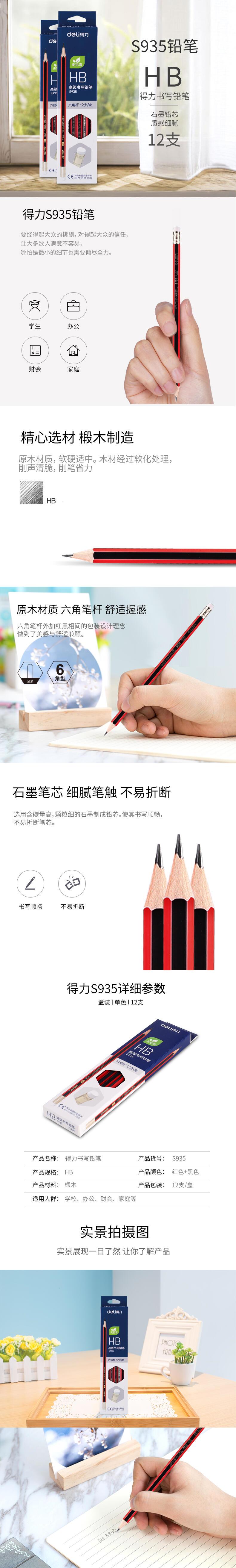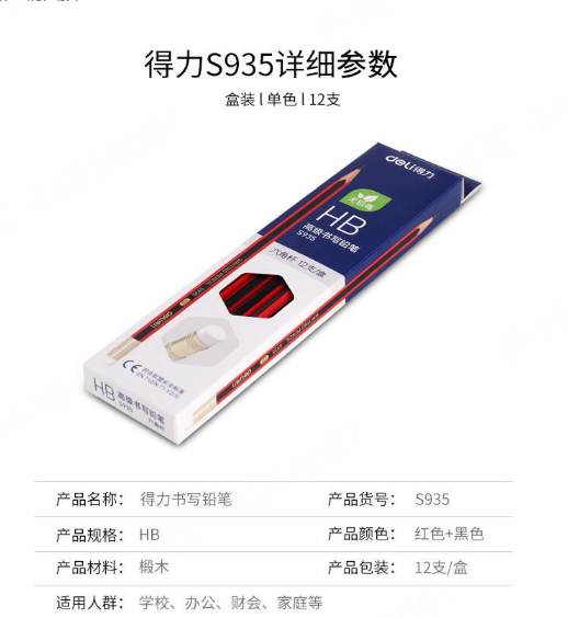 商品标题:得力高级书写铅笔S935-HB(红色)(12支/盒)