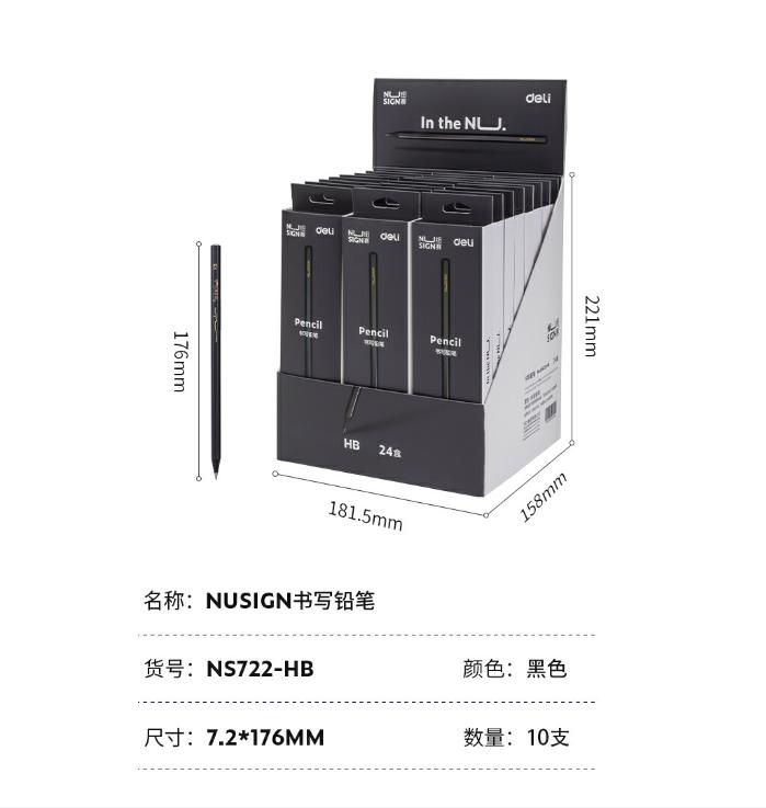 纽赛NS722-HB_10支装黑木铅笔(黑)(10支/盒)