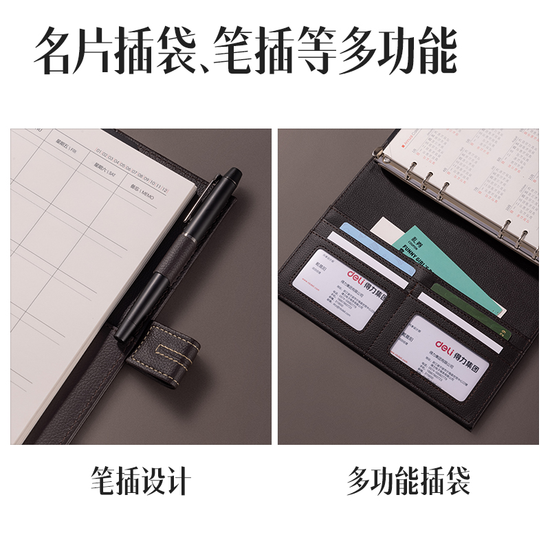 商品标题:得力3158高级活页记事本(咖啡色)-97张-25K(本)