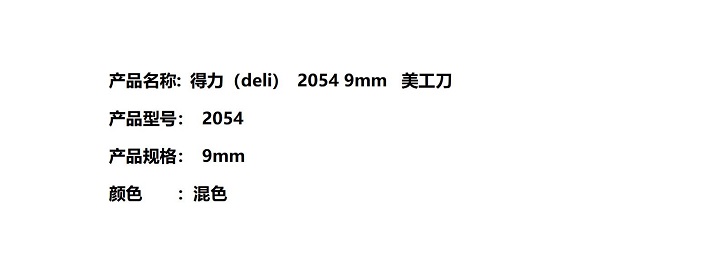 商品标题:得力 2054 美工刀 (单位:把) 混色