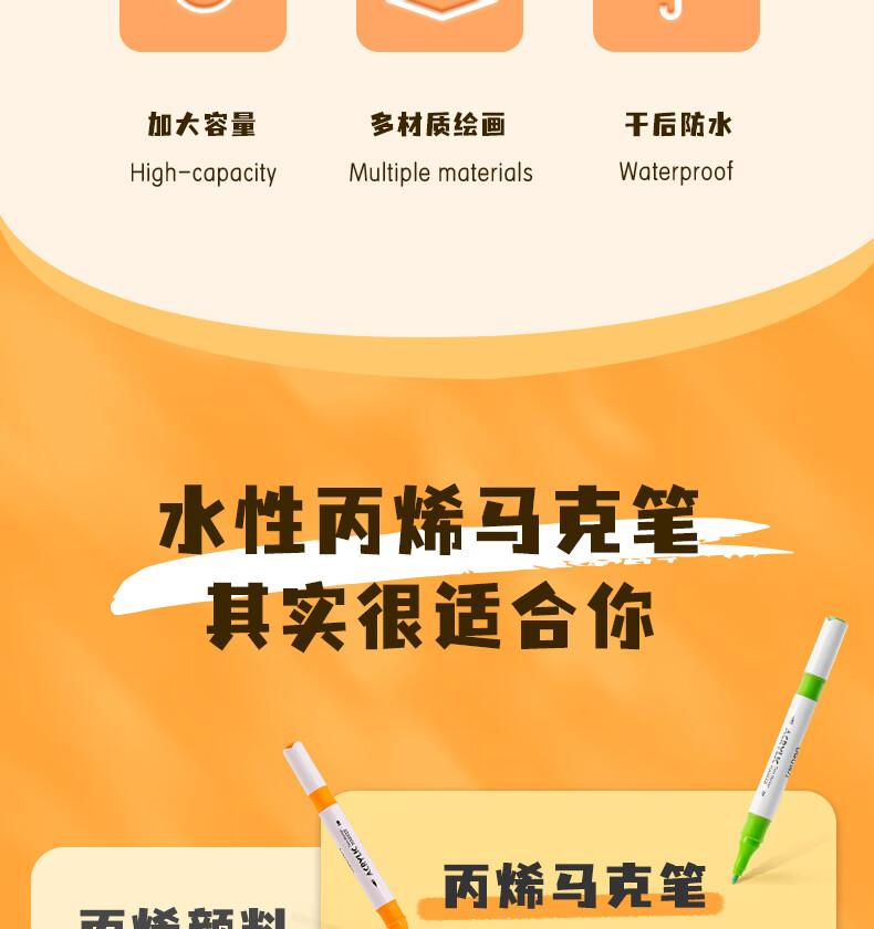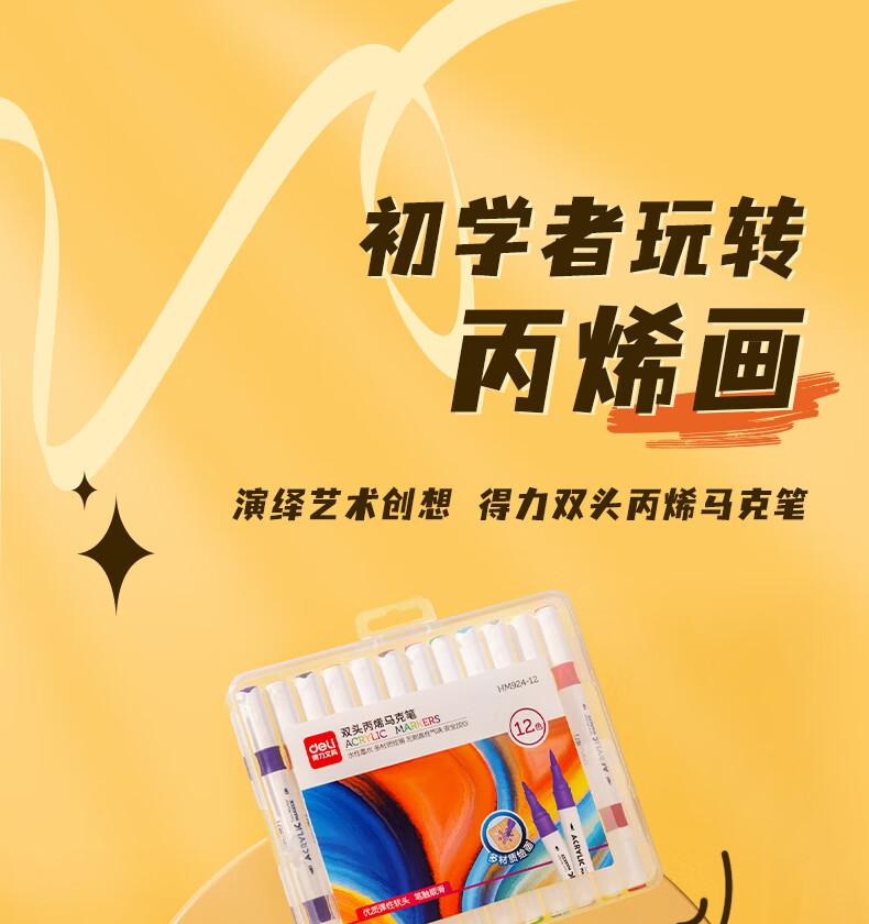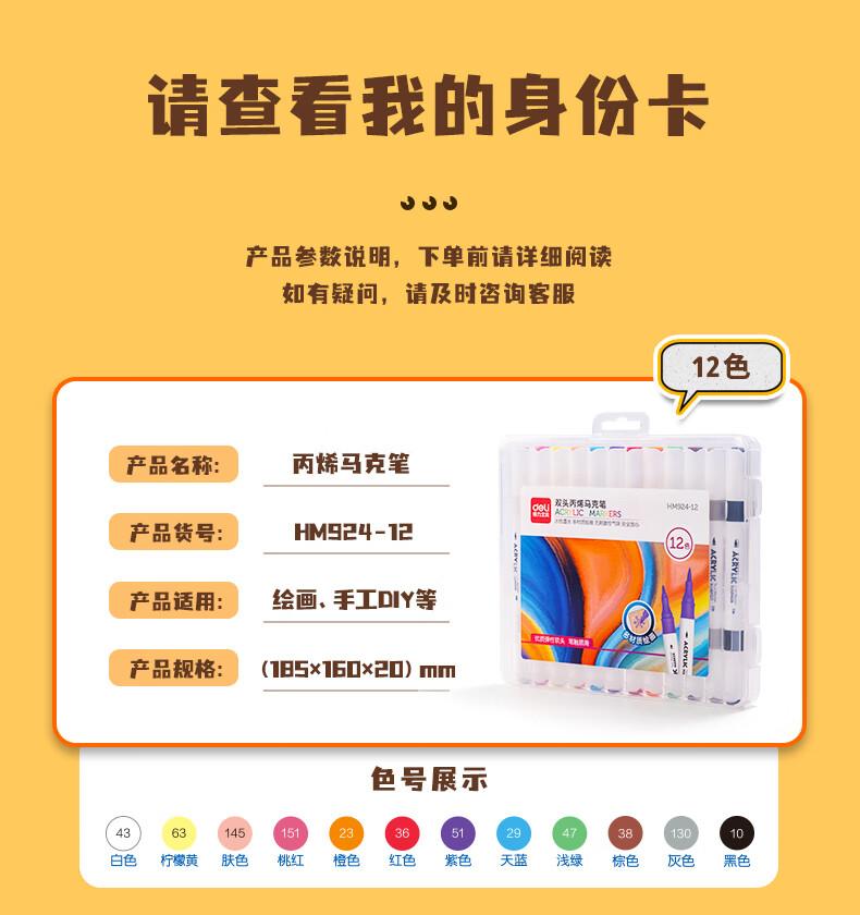 商品标题:得力HM924-24双头丙烯马克笔(混)(24支/盒)