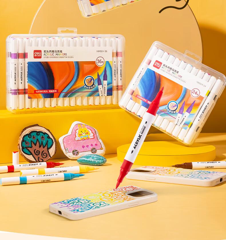 得力HM924-24双头丙烯马克笔(混)(24支/盒)