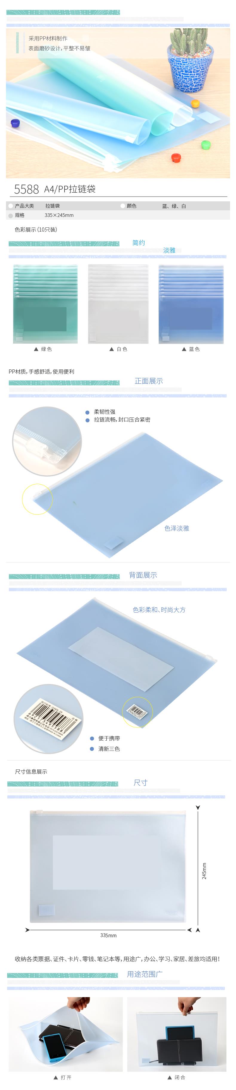 商品标题:得力(deli)5588 A4拉链袋(单位:个)透明