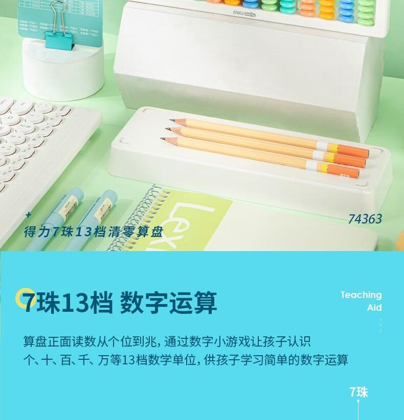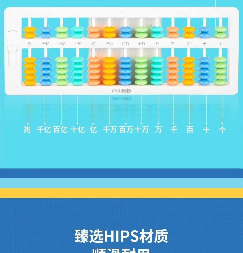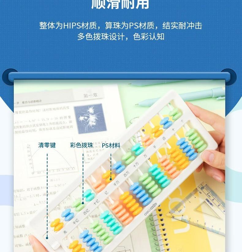 商品标题:得力74363_7珠13档清零算盘(白)(袋)