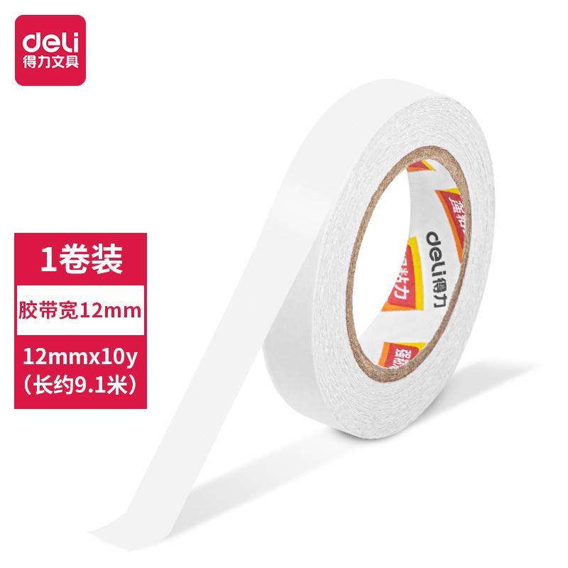 得力30435小卷芯棉纸双面胶带12mm*10y*80um(白色)(1卷/袋)(单位:袋)