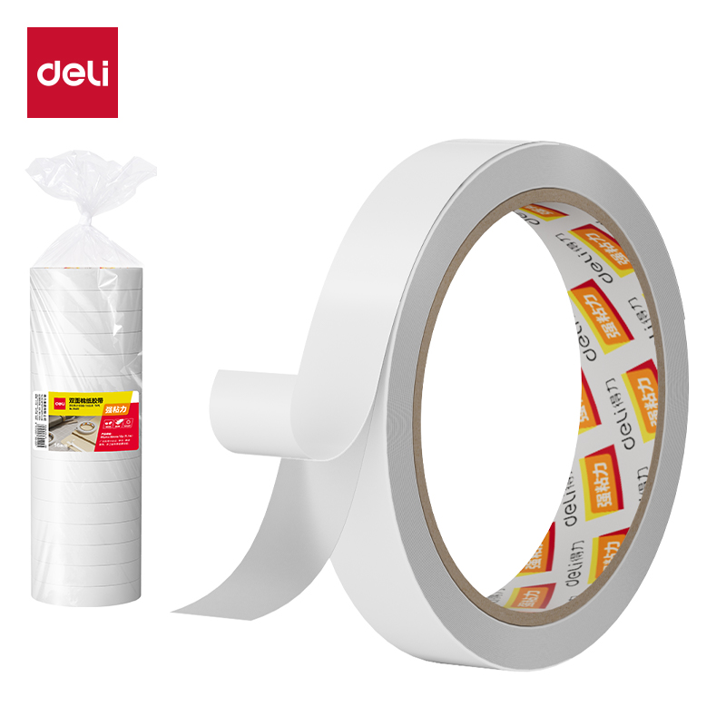 得力(deli) 双面胶带 30402 18*0.08mm 9.14m 白色 16卷/袋 (袋)