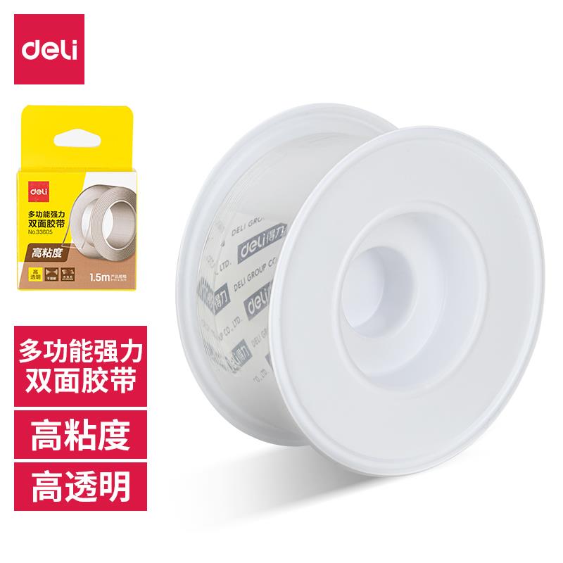 得力33605双面透明胶带(3cm*1.5m*1mm)(透明)(1卷/盒)(单位:盒)