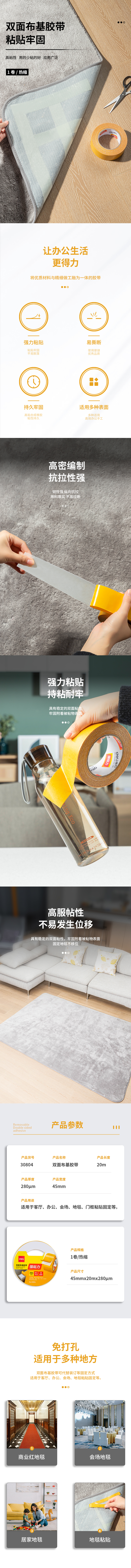 得力30804双面布基胶带45mm*20m*280μm棕色(单位:卷)