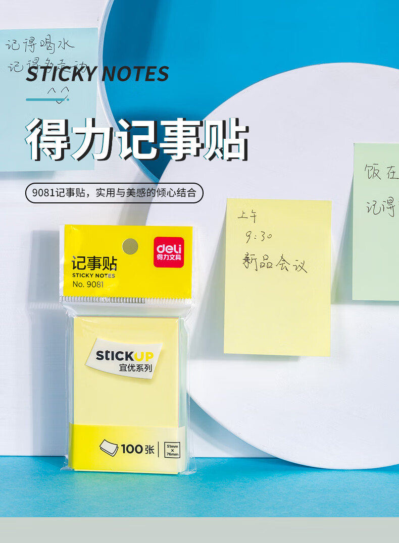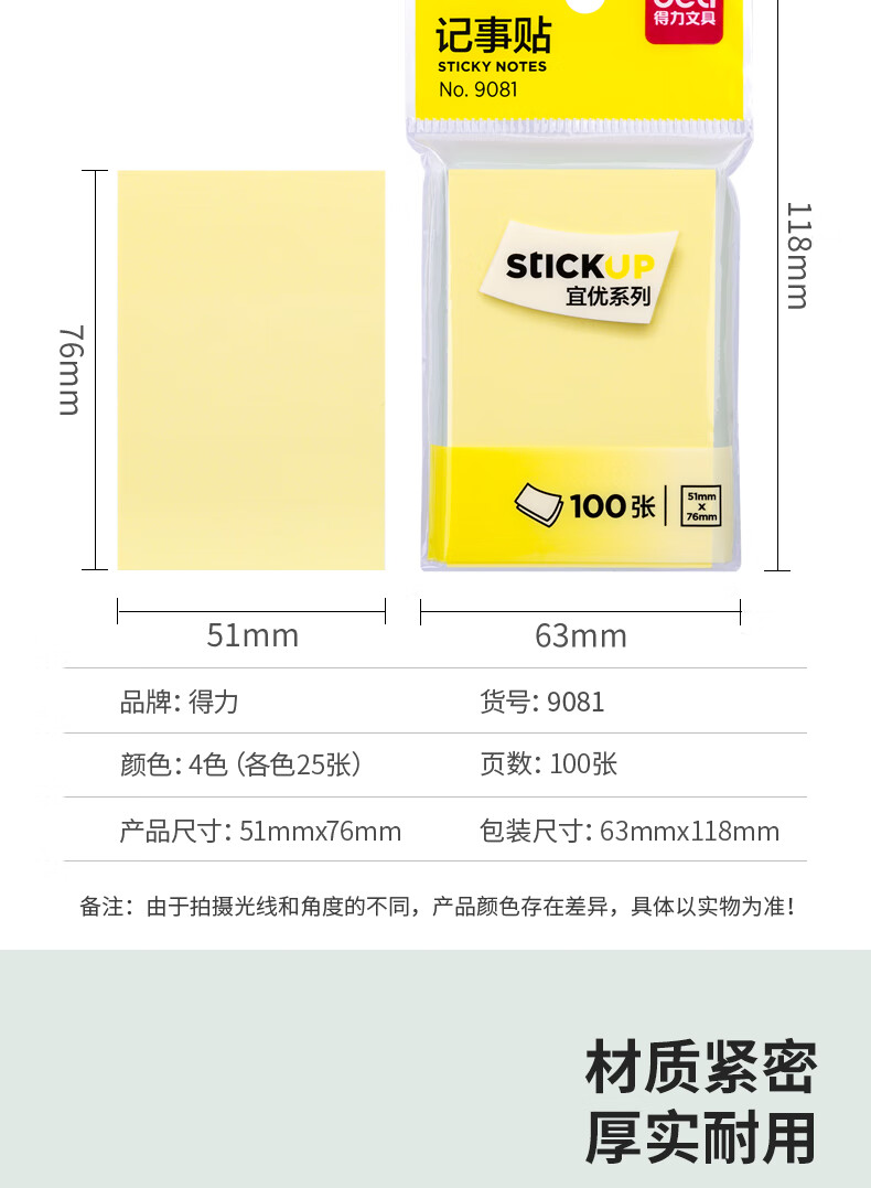 商品标题:得力 9081 百事贴 76x51mm (单位:包) 混色