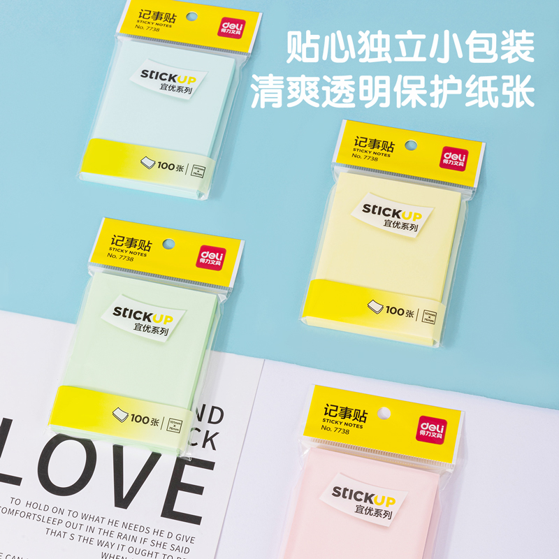 得力7738宜优彩色记事贴76*101mm100张(混)(袋)