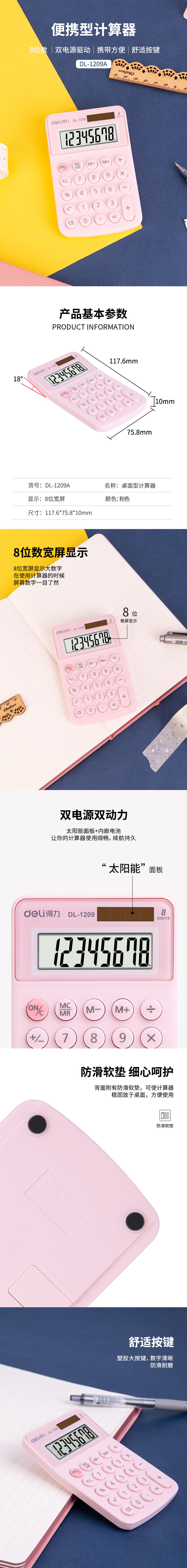 商品标题:得力1209A便携计算器(粉色)(单位:台)