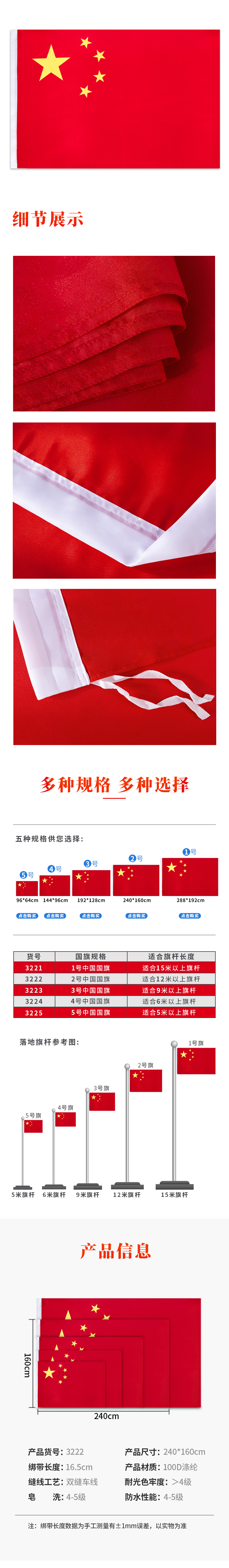 商品名称:得力 3222-2号 国旗240*160cm(单位:面)
