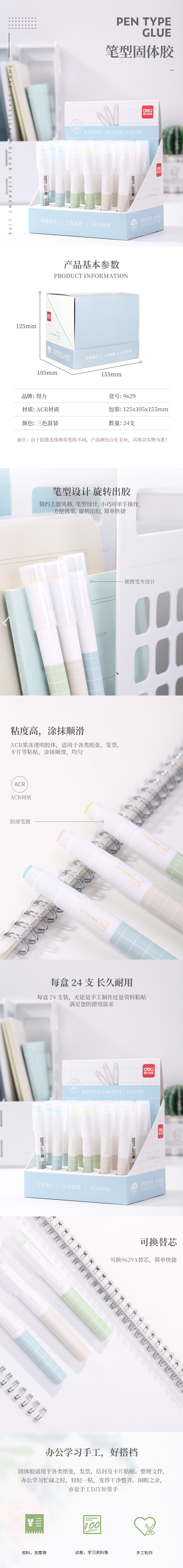 商品标题:得力9629笔型固体胶(混)